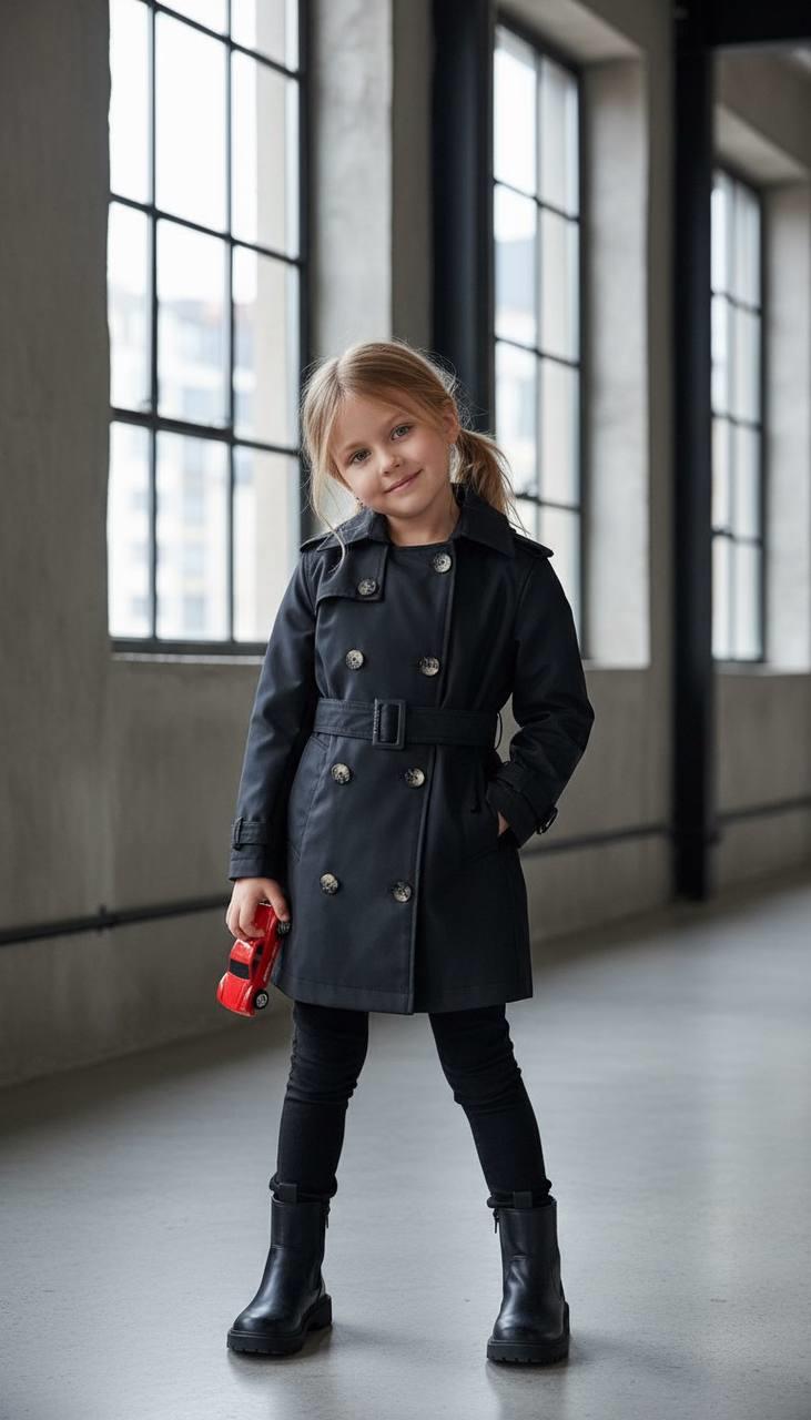 Kız Çocuk Siyah Trençkot Kız Çocuk  Bej Trençkot